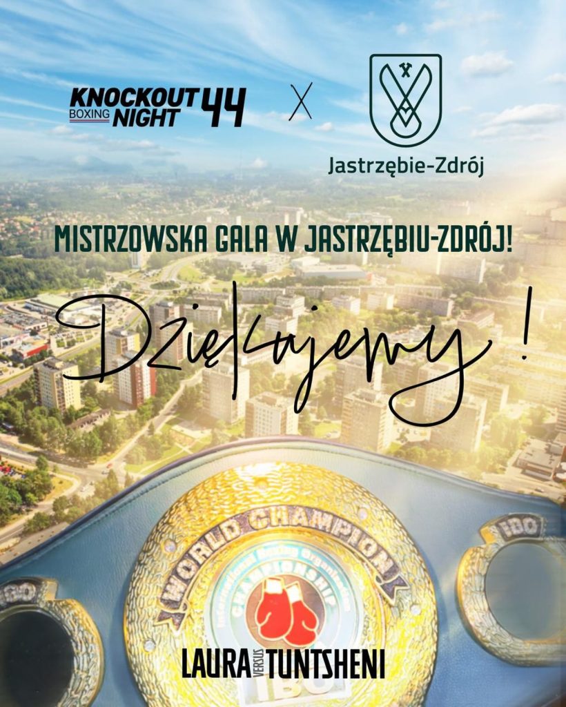 Jako organizator gali Knockout Boxing Night 44 dziękujemy miastu Jastrzębie-Zdrój za zaufanie i możliwość organizacji mistrzowskiej walki na rodzinnej ziemi Laury Grzyb. To dla nas ogromny zaszczyt, że właśnie tutaj, przed własną publicznością stanie do pojedynku o mistrzostwo świata.