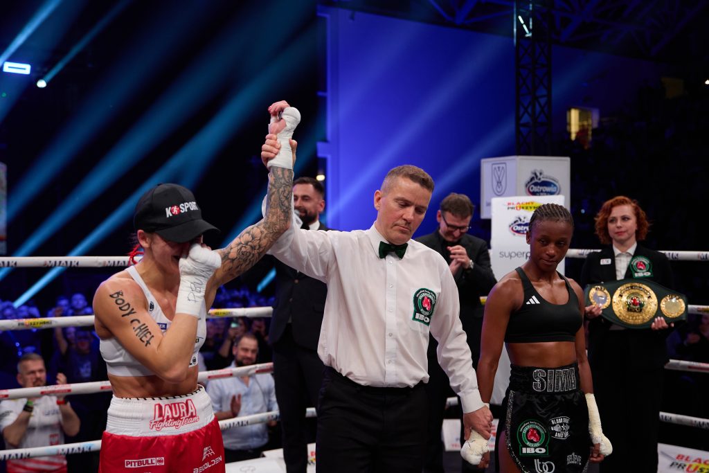 W pojedynku wieczoru gali KBN44 w Jastrzębiu-Zdroju Laura Grzyb pokonała jednogłośnie na punkty Simamkele Tuntsheni, zdobywając mistrzowski pas IBO kategorii super koguciej. Polka w pełni dominowała między linami od pierwszego do ostatniego gongu. Podopieczna Andrzeja Liczika umiejętnie trzymała rywalkę na dystans, a we właściwych momentach przyspieszała i trafiała seriami mocnych uderzeń. Najefektowniejsza w wykonaniu "Grzybowej" była szósta runda, w której pretendentka z RPA zainkasowała kilka naprawdę soczystych uderzeń. Ostatecznie po dziesięciu rundach sędziowie zgodnie wskazali wygraną Laury 99-91, 99-91, 100-90.