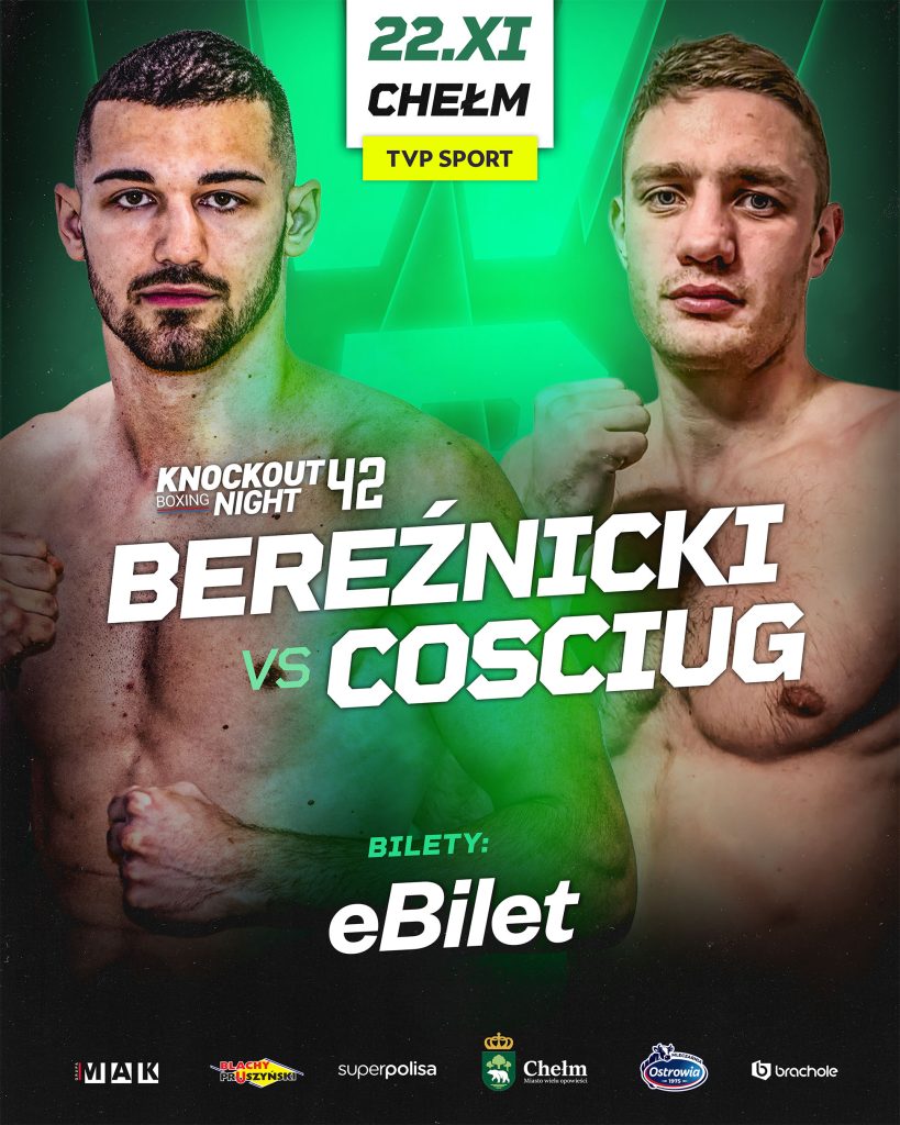 Boksujący w kategorii junior ciężkiej Mateusz Bereźnicki (3-0, 1 KO) Polski olimpijczyk z Paryża skrzyżuje rękawice z Mołdawianinem Dmitrijem Cosciugiem (1-0, 1 KO). Natomiast Rafał Wołczecki (15-0, 10 KO) zawalczy z Kimem Poulsenem (32-9, 9 KO).
